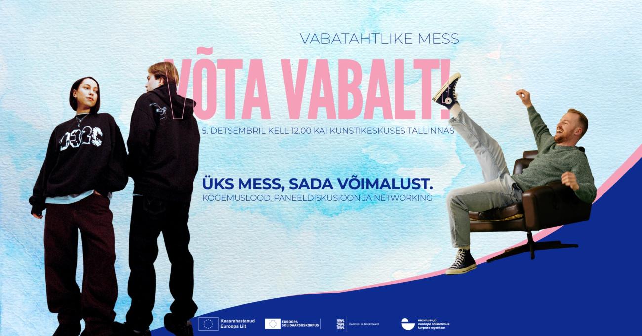 Erasmus+ ja Euroopa Solidaarsuskorpuse agentuuri eestvedamisel toimub 5. detsembril noortele Tallinnas Kai kunstikeskuses vabatahtlike mess “Võta Vabalt!”.