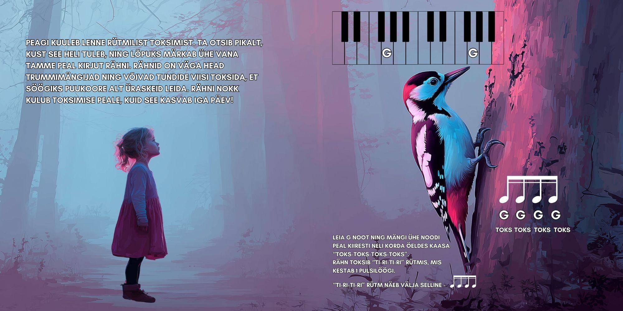Raamatus ärkavad ellu Eesti metsade loomad, kelle liikumist ja hääli saab mängida lihtsate meloodiate kaudu. See ei ole ainult raamat – see on ühine kogemus pilli taga, mis arendab lapse muusikalist kuulmist, rütmitunnet ja loovust ning loob vanemale ja lapsele südamliku ja rõõmsa koosolemise hetke.