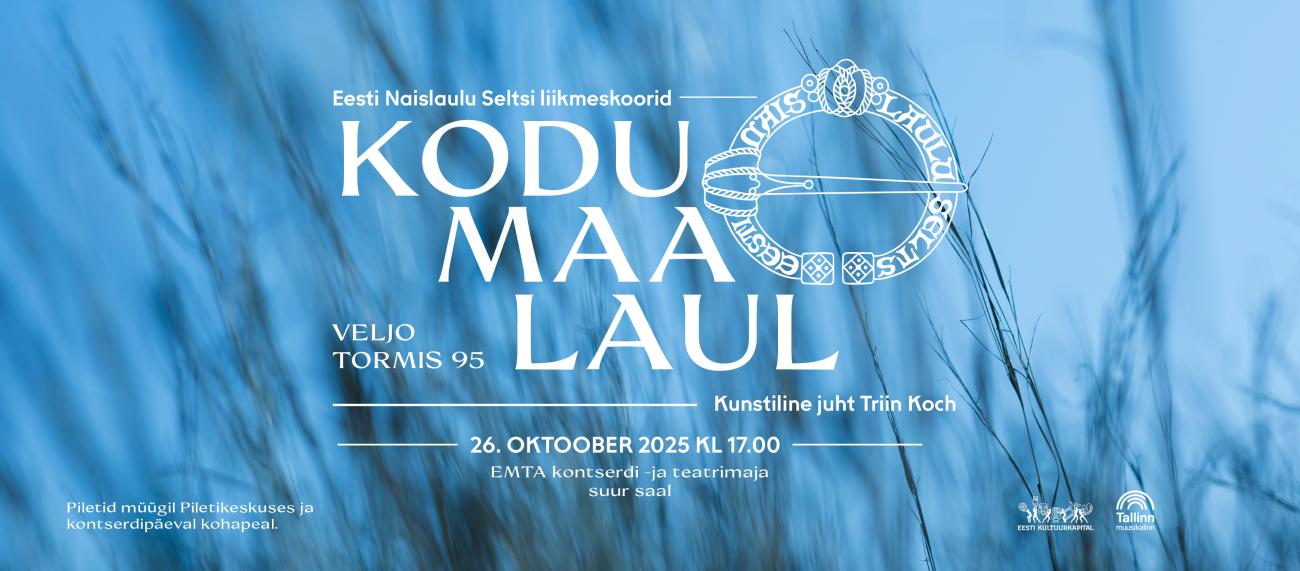 Veljo Tormise 95. sünniaastapäevale pühendatud kontsert "KODU/ MAA/ LAUL" toimub 26. oktoobril, algusega kell 17.00 EMTA kontserdi - ja teatrimaja suures saalis.