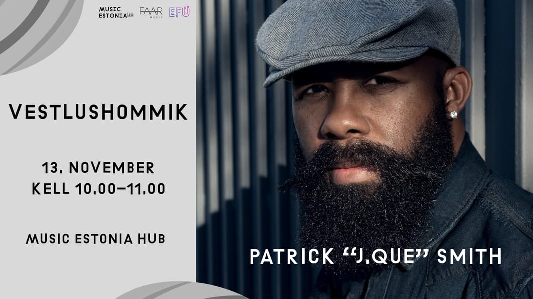 13. novembril külastab esmakordselt Eestit Ameerika laulukirjutaja ja produtsent j.Que. Pakume erakordset võimalust saada osa vestlusest Patrick “j.Que” Smithiga, kelle kirjutatud lugusid leiab selliste maailmakuulsate artistide nagu Usher, Beyoncé, Justin Bieber, Ariana Grande, Britney Spears, Zara Larsson, David Guetta ja paljude teiste repertuaarist.