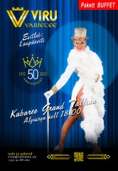 Sädelev kabaree-programm maitsva õhtusöögi ja tantsuga!  Suurepärane võimalus veeta meeldiv nädalavahetuse õhtu otse Toompea lossi vastas!Teie õhtu muudavad meeldejäävaks suurepärane õhtusöök, pokaalide kõlin, kütkestav kabareeshow ja tants unustamatute 70-90 aastate tantsuhittide saatel!Kõike seda pakume Teile vägagi mõistliku hinnaga! Nagu Te teate tähistas legendaarne Viru Varietee 2022 aastal oma 50 juubelit. 50. Juubelisünnipäev on märgilise tähtsusega ka inimese jaoks. Rahvasuu räägib ju, et alates sellest vanusest saab inimene patud andeks, saab alustada nö puhtalt lehelt jne. Aeg ei seisa paigal. Muutuvad valitsused, inimeste harjumused, huvid ja palju muud. Arvestades Teie ettepanekuid ja soove muudame oma etendusi nii, et senise kahe pooletunnise kabareeshow asemel hakkame pakkuma ühte pikemat etendust. Teeme seda selleks, et rahvale jääks  rohkem tantsuaega retrodisko rütmide saatel.Juubeliaastal üritasime Teile pakkuda erinevaid populaarseid lauljaid nende suurepäraste esitustega.  Ja kuna selline praktika õigustas ennast igati, siis jätkame seda, kutsudes Teie ette erinevaid säravaid ja karismaatilisi Eesti artiste. Värske info saamiseks palume Teil jälgida Viru Varietee facebooki lehte. Pakume Teile pidulikuks õhtusöögiks kahte variant.Reedeti À La Carte pakett. Laupäeviti BUFFEE pakett.Hinnad sõltuvalt istekohast 78 – 98 eurot.Hind sisaldab varieteeprogrammi, pokaali veini ja maitsvaid roogasid restorani peakokalt.À La Carte pakett – 3 erinevat pearooga omal valikul. Menüü siin: http://www.varietee.ee/VV/alacarte_est25.pdf# BUFFEE pakett – külluslik ja mitmekesine õhtusöök Rootsi laua stiilis.Menüü siin: http://www.varietee.ee/VV/buffet_est25.pdf# ÕHTU PROGRAMM: Varietee Ob-La-Di, Ob-La-Da on kava, mille repertuaaris on põhiliselt tantsunumbreid 80ndate ja  90ndate Viru Varieteest – Pakett À LA CARTEUksed avame kell 18:00. Vestibüülis pakume klaasikest vahuveini, laudadel on eelnevalt serveeritud erinevad suupisted!Intiimses hämaruses kõlab romantiline muusika, mis lausa kutsub Teid tantsusaatel partneriga õrnusi jagama!Samal ajal serveerib hotelli peakokk Teile pearooga! 20:30 kustuvad saalis tuled ja algab meelierutav kabareeprogramm! See ongi VIRU VARIETEE!21:15 pärast showprogrammi pakume Teile unustamatut tantsuõhtut legendaarsete tantsuhittide saatel 70-90 aastatest. Tantsuõhtu teete unustamatuks just TEIE!23:00 orienteeruvalt lõpeb Teie meeldiv õhtu VIRU VARIETEES!NB! Kui soovite vahetada sooja toitu ja tellida paketis sisalduvast soojast toidust erinev praad, siis palume tellimus esitada enne 18:30!VIRU VARIETEE ootab Teid alati! ÕHTU PROGRAMM:  Kabaree Grand Tallinn on kava, mille repertuaaris on viimasel ajal loodud kaasaegsed numbrid – Pakett BUFFET18:00 avanevad uksed. Vestibüülis pakume bokaali kihisevat vahuveini. Saalis ootab Teid rikkalik Rootsi laud!Intiimses hämaruses kõlab romantiline muusika, mis lausa kutsub Teid tantsusaatel partneriga õrnusi jagama!20:30 kustuvad saalis tuled ja alustab meelierutav kabareeprogramm! See ongi VIRU VARIETEE!21:15 pärast showprogrammi pakume Teile unustamatut tantsuõhtut legendaarsete tantsuhittide saatel 70-90 aastatest. Tantsuõhtu teete unustamatuks just TEIE!23:00 orienteeruvalt lõpeb Teie meeldiv õhtu VIRU VARIETEES!VIRU VARIETEE ootab Teid alati! SAALI PLAAN • Pakett À LA CARTE: http://www.varietee.ee/VV/saal25.pdf#SAALI PLAAN • Pakett BUFFET: http://www.varietee.ee/VV/buffetsaal25.pdf#  NB! Kõik piletid võetakse müügist maha Piletilevi müügikeskkonnast 1 päev enne üritust. Ürituse päeval on võimalik osta pilet ainult broneerides see telefonil: +372 5088060Korraldajal on õigus ühepoolselt muuta ürituse toimumise aega või peatada selle, teatades sellest ürituse osavõtjatele, avaldades asjakohast teavet partneri veebilehel https://www.piletilevi.ee/, kui Eesti valitsuse kehtestatud piirangute tõttu osutub Viru Varietee ürituse tavapärane läbiviimine võimatuks.Ürituse lingid:http://www.viruvarietee.ee http://www.varietee.ee http://www.youtube.com/ViruVarietee http://www.facebook.com/ViruVarietee