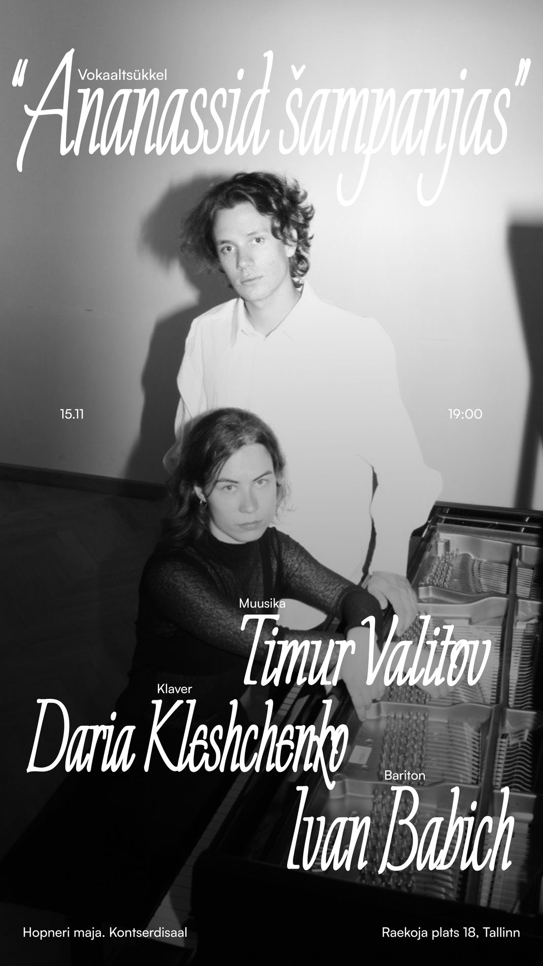 Vokaalsükkel “Ananassid šampanjas“ on kammerlik etendus, millel on immersiivsed elemendid. Astuge unustamatule teekonnale vene Sügava Kuldaja luule ja muusika maailma.