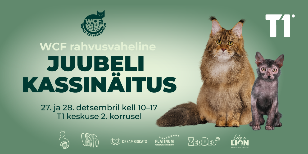 Kõik on oodatud 27.-28. Detsembril T1 keskuses WCF Rahvusvahelisele kassinäitusele. Võimalus tutvuda kasvatajatega nii Eestist kui ka kaugemalt ning tulla imetlema nii tuntumate kui ka haruldasemate tõugudega. Kohal on abesiinia, briti, šoti, Norra metskass, Maine coon jne.
