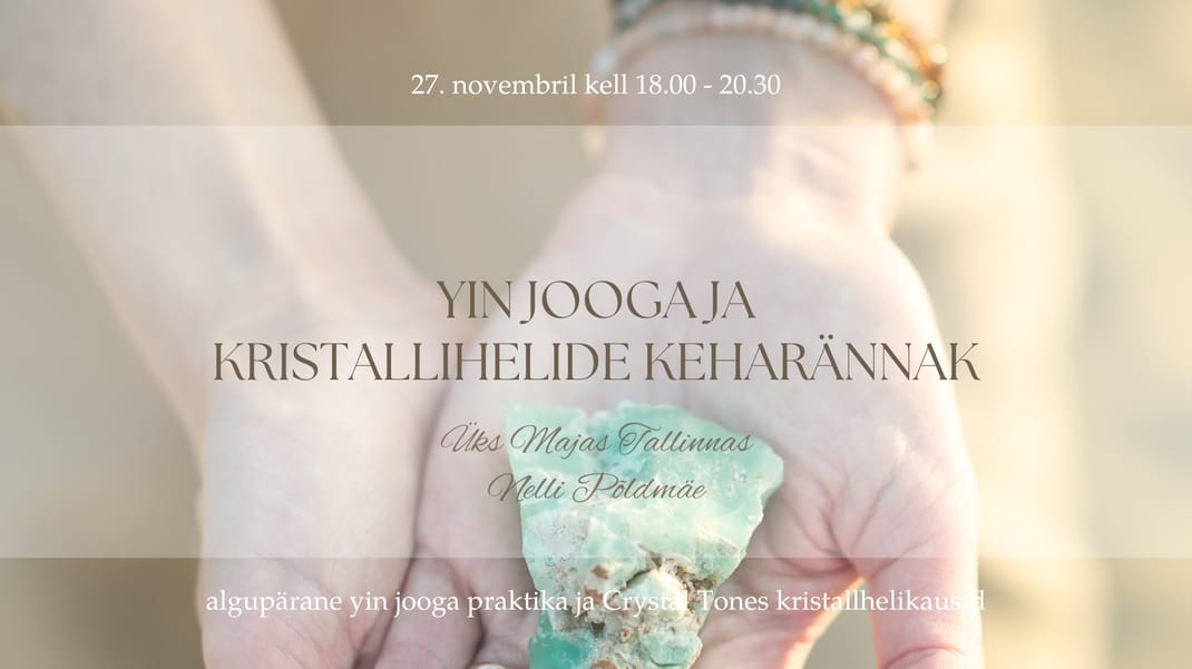 Sel õhtul kohtuvad aeglane keha avamise Yin jooga praktika ja puhas alkeemiliste kristallhelikausside kõlamaastik.